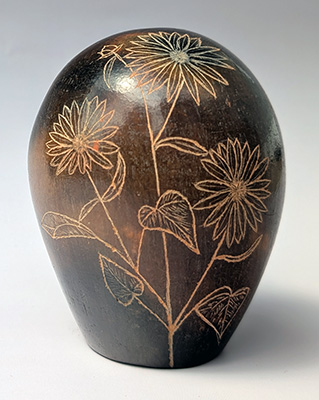 Traditional seed pot Hand-dug, hand processed clay Coil-built Burnished with a rock Open pit-fired Hand-etched